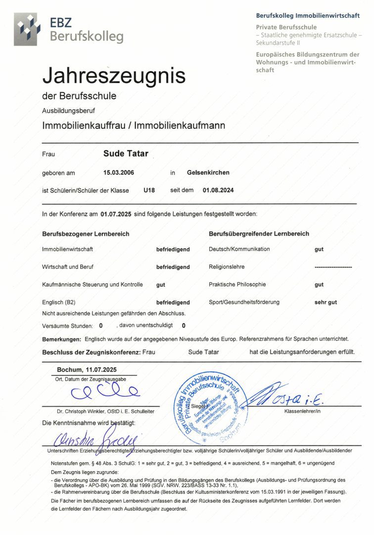 Zu meinem Team gehört seit dem 1. August 2024 Frau Sude Tatar, die eine Ausbildung zur